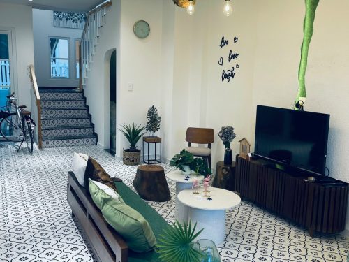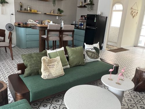 – Tình trạng nội thất: Đầy đủ dụng cụ bếp, nồi cơm điện, nồi lẩu điện, lò nướng điện, lò vi sóng, máy giặt, tủ lạnh , loa hát karaoke ( 300k), xe đạp miễn phí, phao bơi ng lớn( cho thuê 100k/ngày), phao bơi và hồ bơi trẻ em miễn phí.